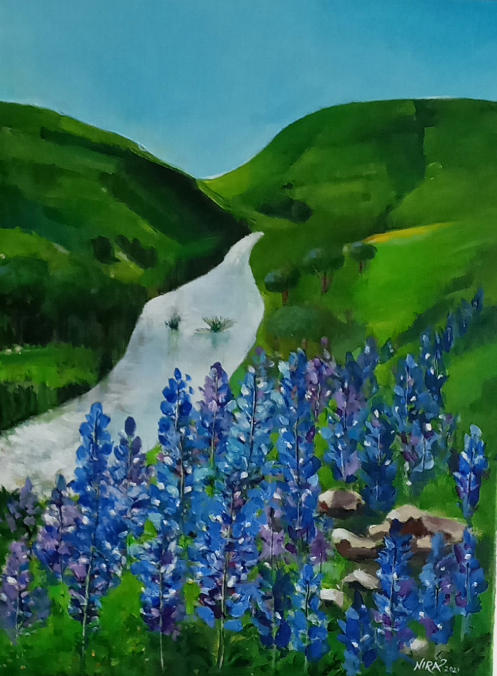 פרח החוטמית שאפשר לראותו לכל אורך כביש 6, הציור בצבעוניות אופטימית נעימה